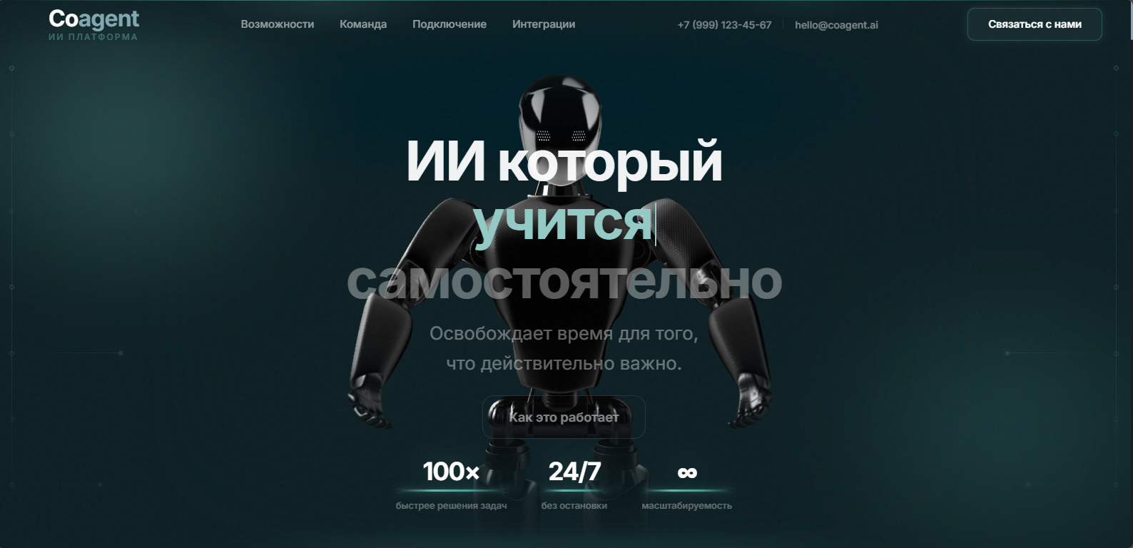Лендинг IT-студии с голосовым AI-аватаром — отвечает посетителям в реальном времени и передаёт диалог живому оператору.